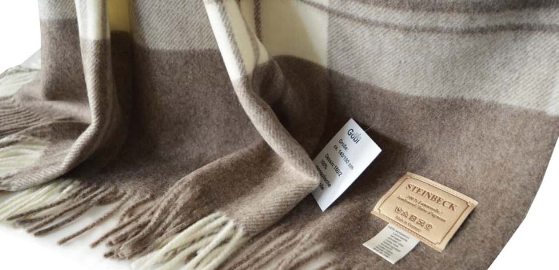 Ассортимент немецких пледов Steinbeck в шести видео. Однотонные и клетчатые пледы, модели из кашемира и шерсти ягнёнка.